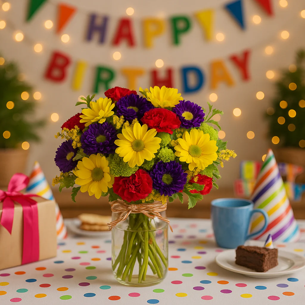 Bouquet de joie vibrant dans un pot Mason